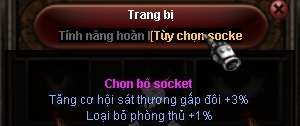 Tính năng Sockets : Tăng cơ hội sát thương x2 : 3% | Loại bỏ phòng thủ 1%